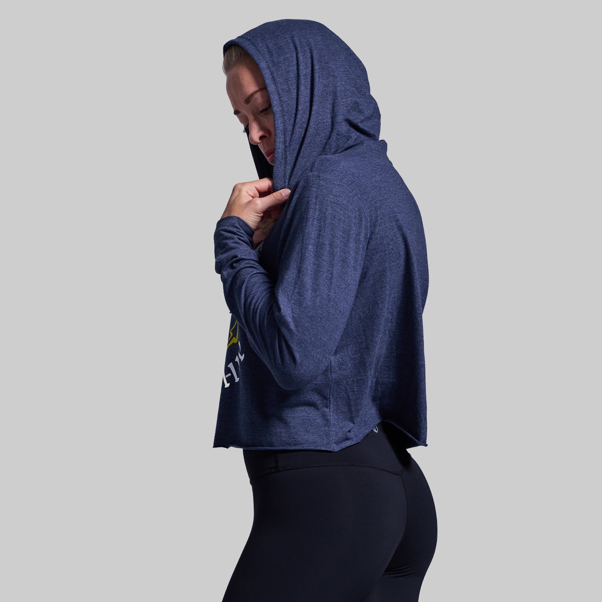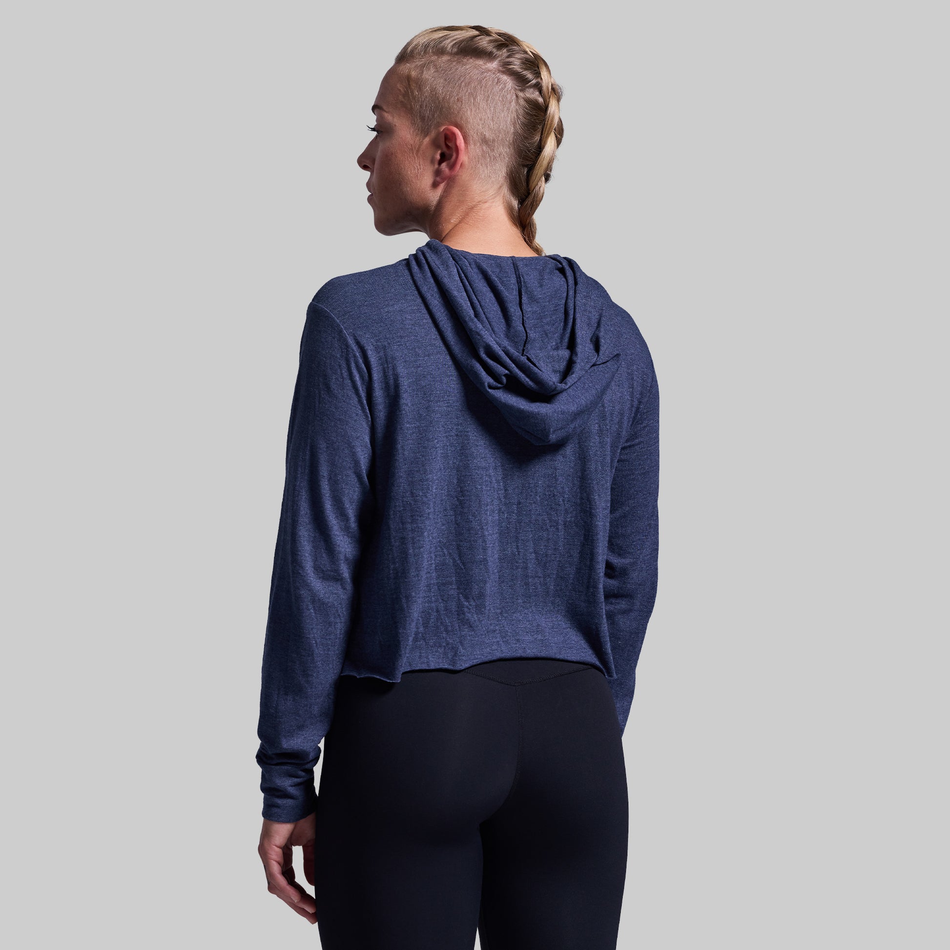 This ultra soft Cropped Tee Hoodie is light weight, features cuffed sleeves and draw strings to tighten or loosen the hood.