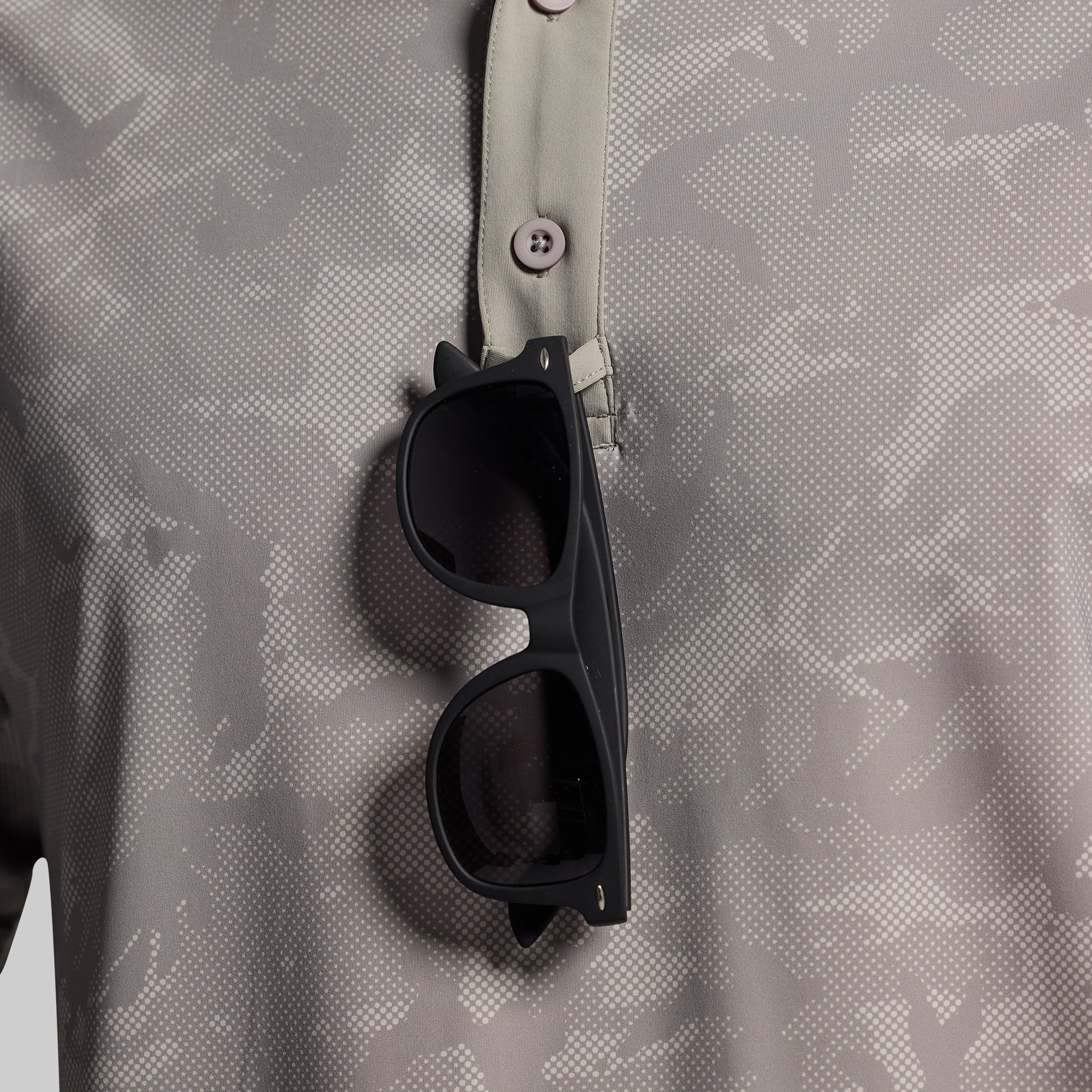 - Sunglass holder on front placket