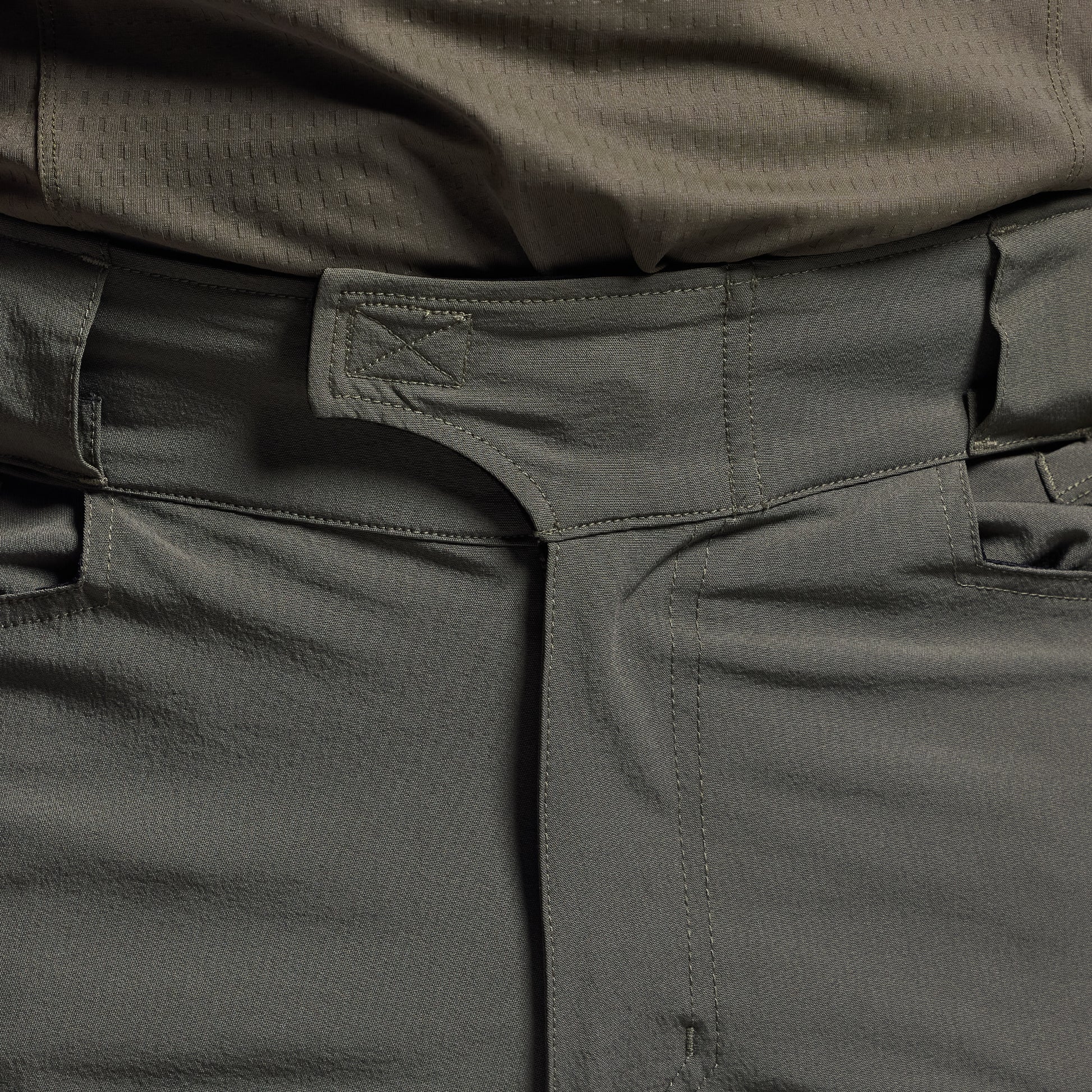 - Zippered back welt pockets with mesh pocket bags